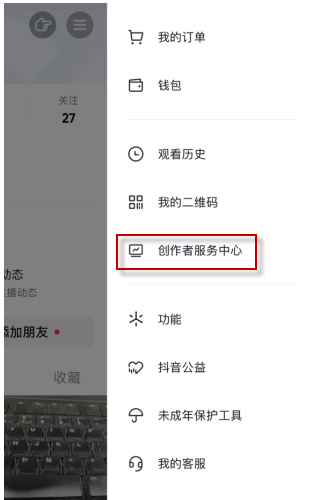 2、在菜单界(jie)面(mian)选择(hoose)创作者服务中心。