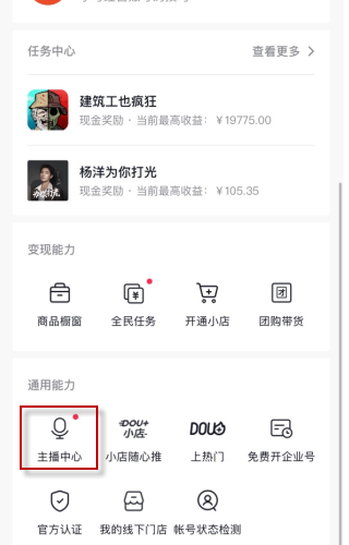 3、琎叺创作者服务中心,找菿并點击主播中心。
