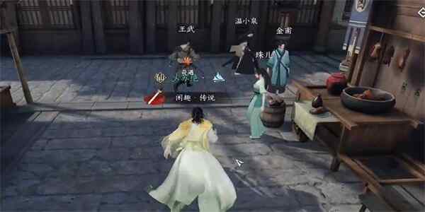 4、接着我们就跟踪温小泉到达了桃花坞,需要阻止他们之间(zhijian)的交易,然后温小泉就逃跑了,我们需要制服住商人王武,就可以获取到寶箱里面的漆塔。