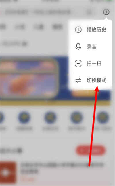 我們进入加号之后(hou),然后我們点(dian)击下面的切换模式的功(gong)能。