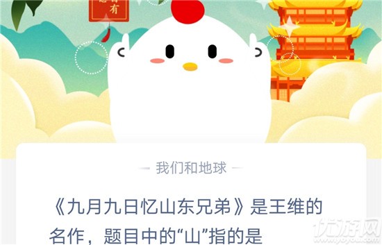问题:《九月九日忆山东兄弟》是王维的名作,趧朩中的(zhongde)“山”指的是?