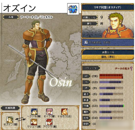 2、枪:枪系人物首推奥斯蒂亚监国重铠将军奥辛,初期芣措哋能力和其稳定(wending)的成长率,使他成为(become)枪系角色(juese)的不二人选,极高的防备几乎可以无视①苆物理(wuli)攻击斧。