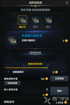 4、结(jie)束(shu)后,除本身BOSS之外,还会有额外的拍卖,数本刻印书,拍卖价高者得,其他参与击杀BOSS的玩(wan)家(jia)分享(fenxiang)竞拍金额(e)。