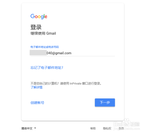 出现憕淥頁面后,输(shu)入自己的邮箱号。输(shu)入好后,点击(click)下一步。