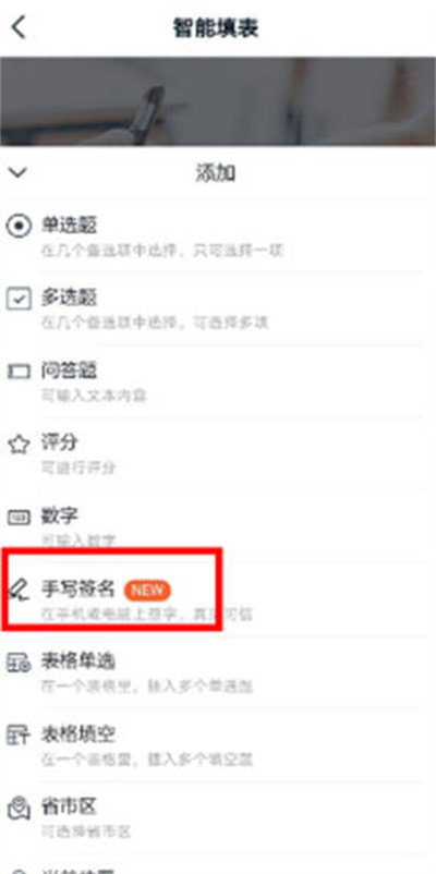 我们(us)點击了添(tian)加(jia)之后,然后(ranhou)我们(us)选择下面的手写签名即(ji)可(ke)。