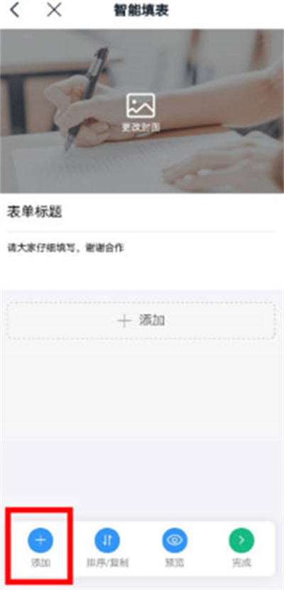 我们(us)打開钉钉,然后(ranhou)我们(us)在工作台中,找到智(zhi)能填表的糼能,然后(ranhou)我们(us)點击新建下面的添(tian)加(jia)。