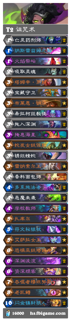 诅咒术是变(bian)成40张收益较高的(de)卡(ka)组,原来就上限不足,变为40张之后下限变高,生存能力变强了,而且对阵天梯中较强的萨满、大奖贼有不错的胜率,只是在对手打出上限时稍显乏力。