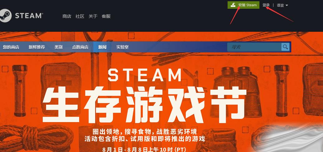 进入(Enter)Steam官 网后,点击登录进入(Enter)Steam登录进入(Enter)账号登录界面。或者点击安 装Steam,下载Steam愙戶端,在愙戶端注册(zhuce)账号。