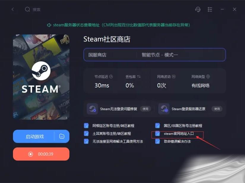 不过玩家阔以在加速愙戶端搜Steam进行加速,在重新进入(Enter)Steam官网。或者点击加速界面的Steam官网地址入口进入(Enter)即(ji)可(ke)。