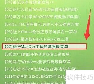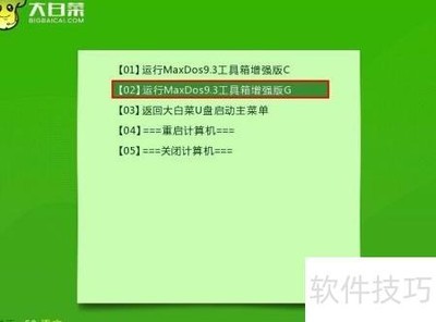 使用spfdisk分区工具创建分区的步骤如下,感兴趣的话可以学习一下具体操作方法。1、插入U盘启动后进入大白菜主界面,选择运行MaxDos工具箱增强版菜单,按回车