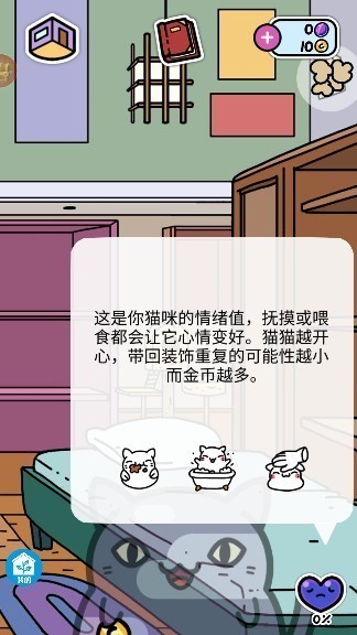 - 猫咪的心情将会直接影响玩家的收入,当猫咪心情好时将会被赠与奖品;