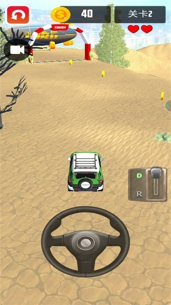 - 先熟悉操作,方向盘控住方向,松开就是刹车,右边可以控制倒挡和前进挡。